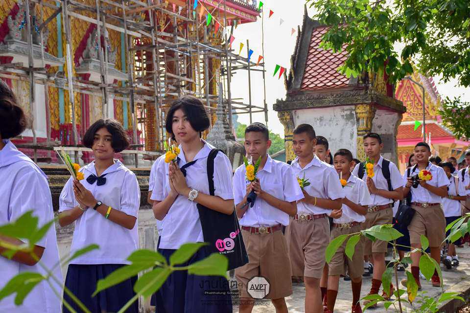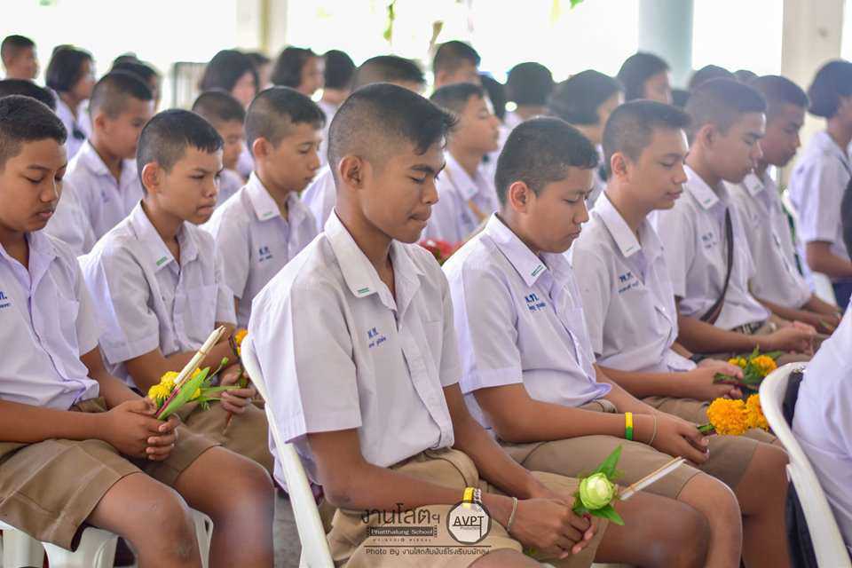 คณะครูและนักเรียนร่วมปฏิบัติกิจกรรมเนื่องในวันวิสาขบูชา ประจำปี 2562