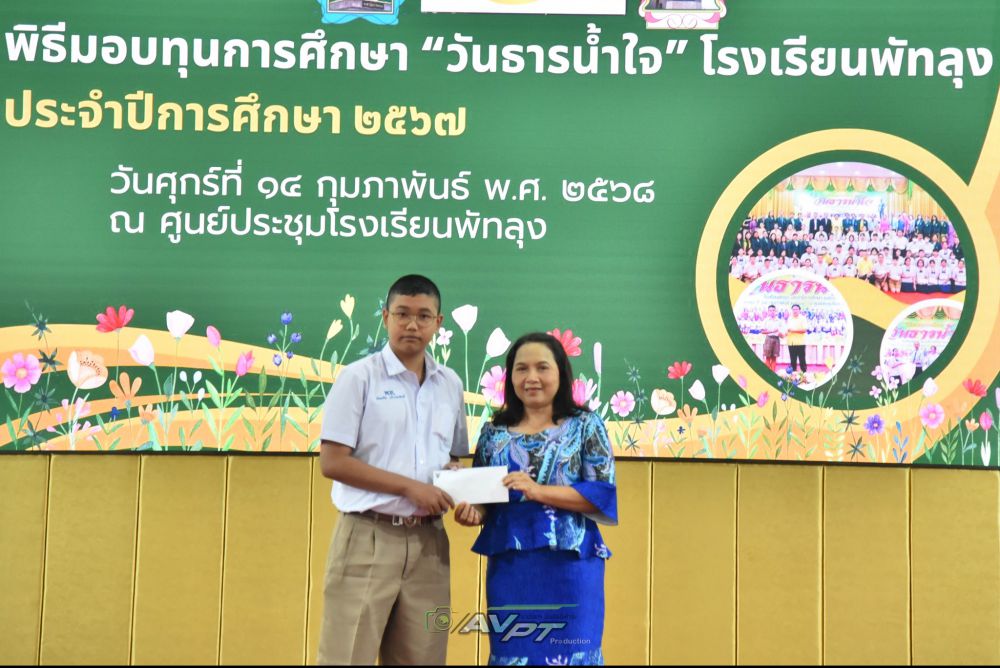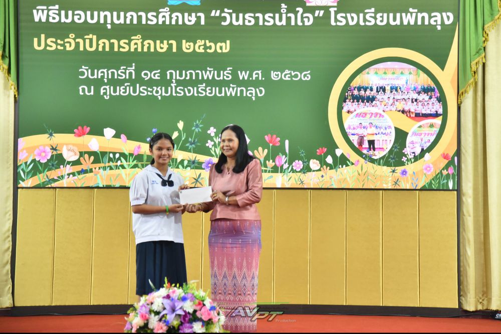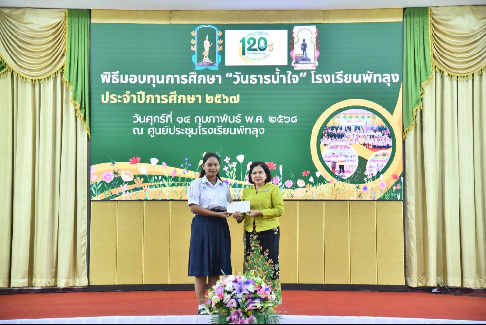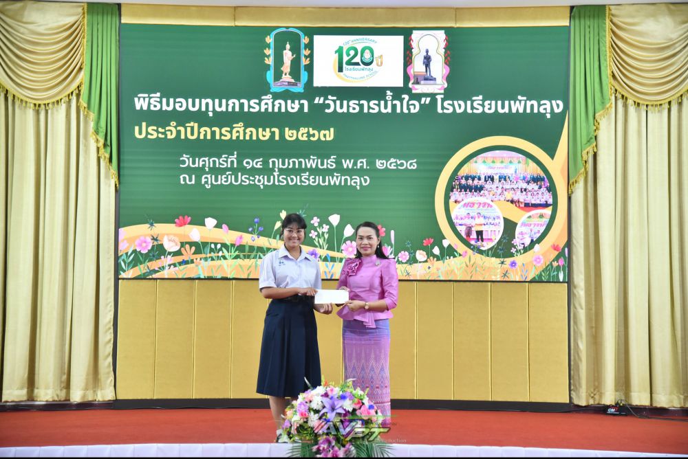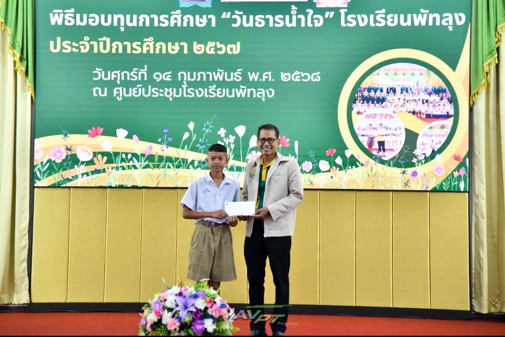 14 กุมภาพันธ์ 2568 โรงเรียนพัทลุงจัดพิธีมอบทุนการศึกษาแก่นักเรียนเนื่องในวันธารน้ำใจปีการศึกษา 2567 แก่นักเรียนที่เรียนดีประพฤติดีขาดแคลนทุนทรัพย์จำนวน 256 ทุน ทุนละ2000 บาท รวมเป็นเงิน 512,000 บาท โดย นายประจวบ รามณีย์ นายกสมาคมผู้ปกครองและครูโรงเรียนพัทลุงเป็นประธานการมอบทุน พร้อมด้วยภาคีเครือข่ายโรงเรียนพัทลุงและผู้มีจิตเมตตา ณ ศูนย์ประชุมโรงเรียนพัทลุง ทางโรงเรียนพัทลุงขอขอบพระคุณทุกท่านเป็นอย่างสูง มาณโอกาสนี้ที่ได้บริจาคทุนการศึกษาและมาเป็นเกียรติในการมอบทุนในครั้งนี้ S:1