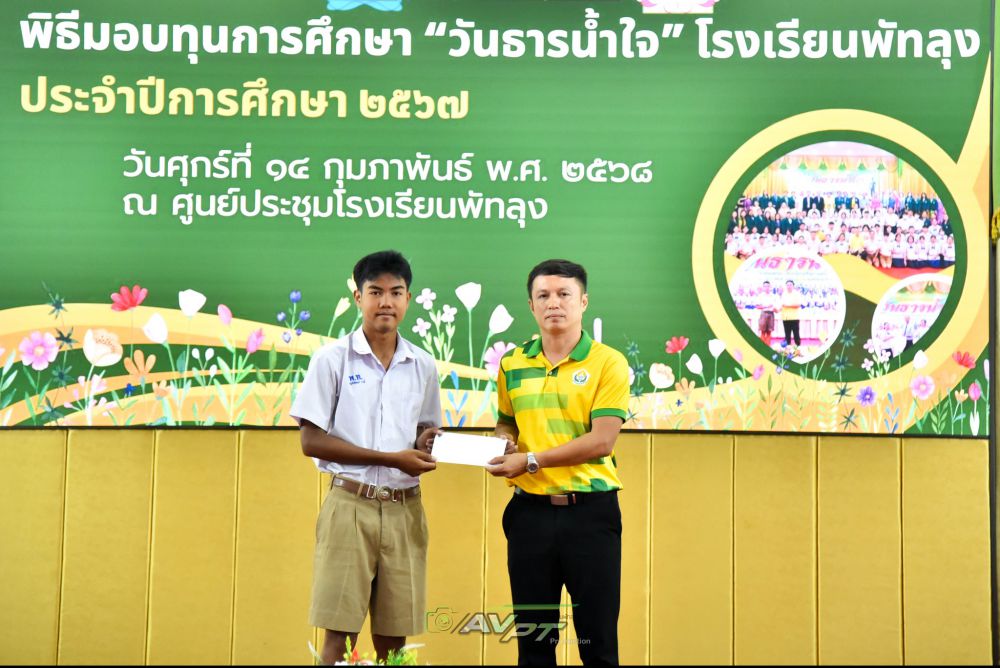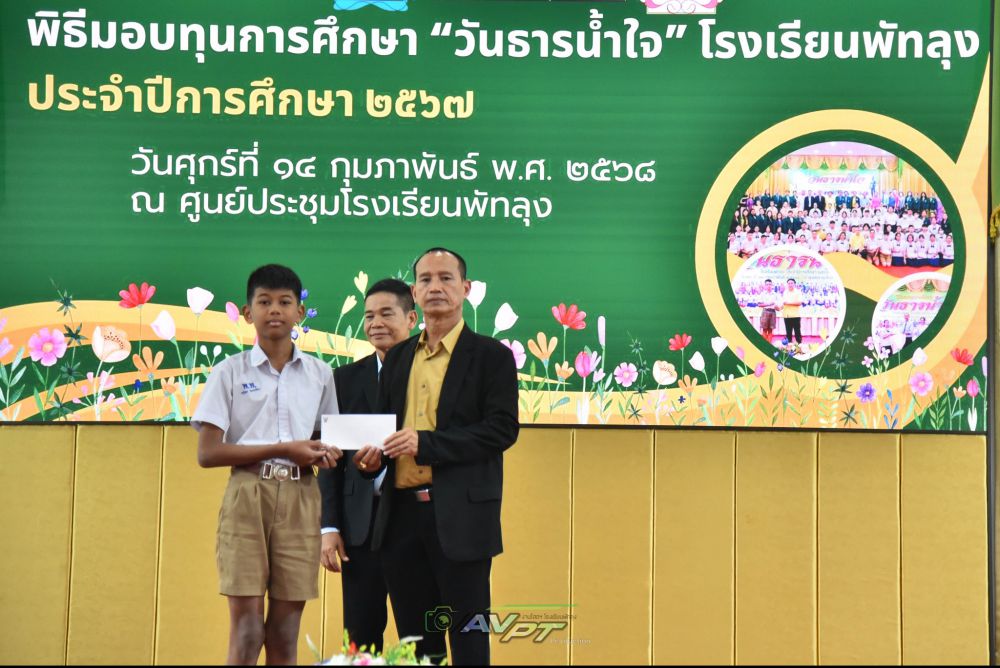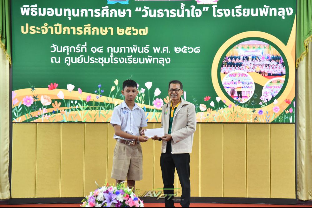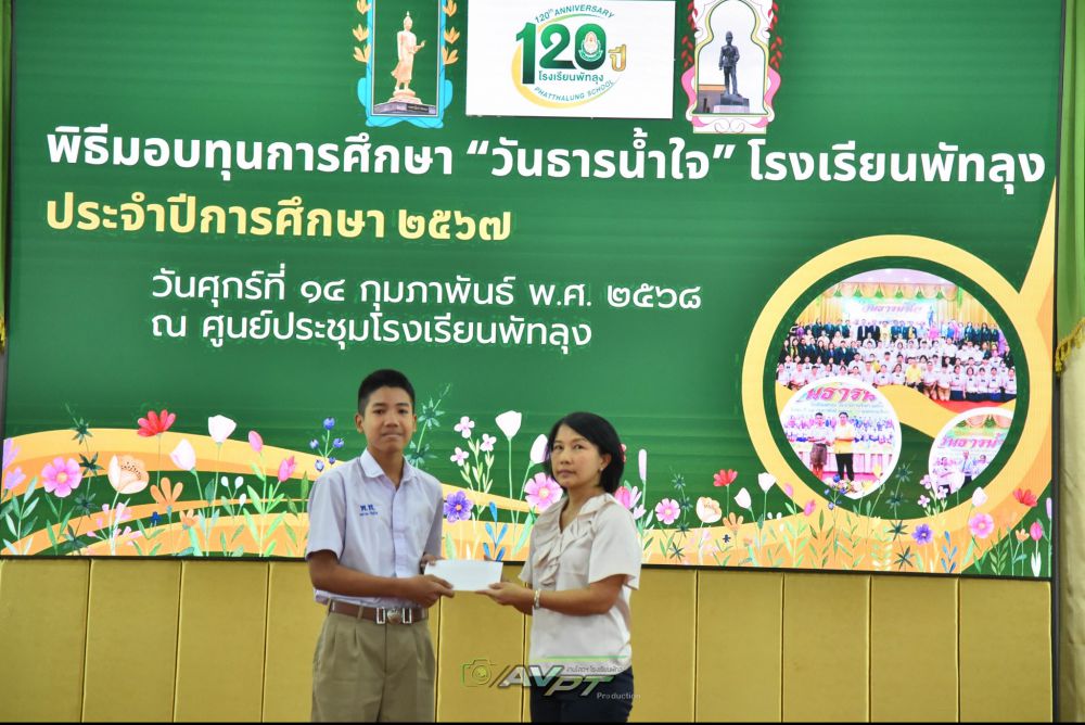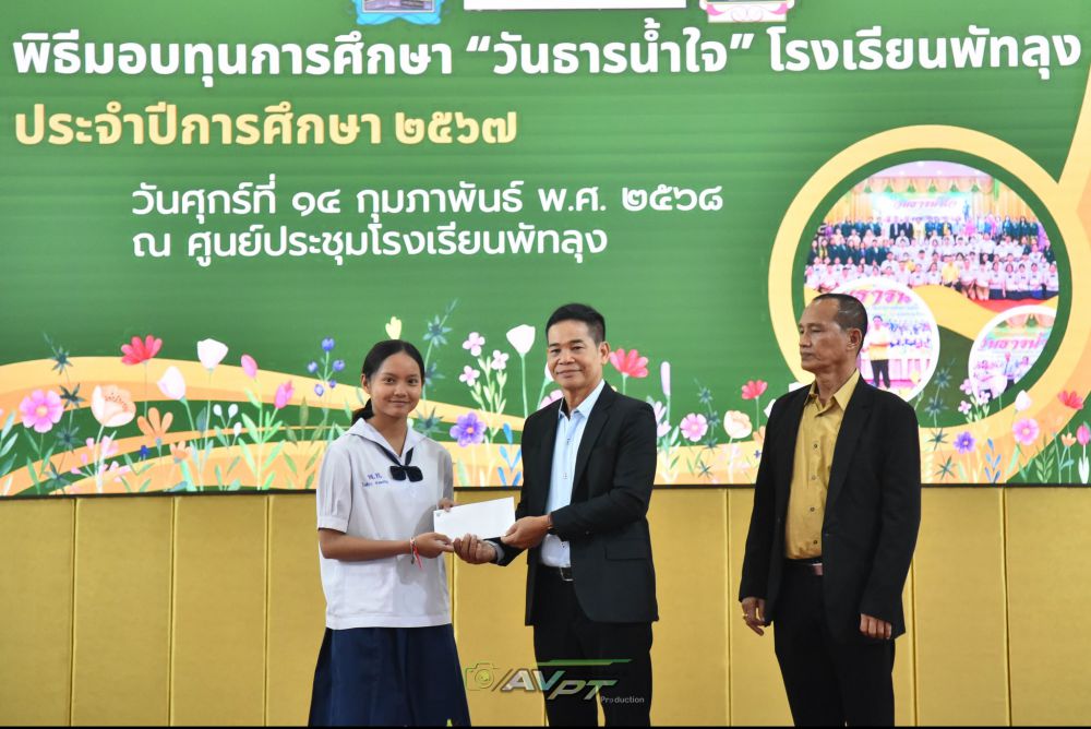 14 กุมภาพันธ์ 2568 โรงเรียนพัทลุงจัดพิธีมอบทุนการศึกษาแก่นักเรียนเนื่องในวันธารน้ำใจปีการศึกษา 2567 แก่นักเรียนที่เรียนดีประพฤติดีขาดแคลนทุนทรัพย์จำนวน 256 ทุน ทุนละ2000 บาท รวมเป็นเงิน 512,000 บาท โดย นายประจวบ รามณีย์ นายกสมาคมผู้ปกครองและครูโรงเรียนพัทลุงเป็นประธานการมอบทุน พร้อมด้วยภาคีเครือข่ายโรงเรียนพัทลุงและผู้มีจิตเมตตา ณ ศูนย์ประชุมโรงเรียนพัทลุง ทางโรงเรียนพัทลุงขอขอบพระคุณทุกท่านเป็นอย่างสูง มาณโอกาสนี้ที่ได้บริจาคทุนการศึกษาและมาเป็นเกียรติในการมอบทุนในครั้งนี้ S:1